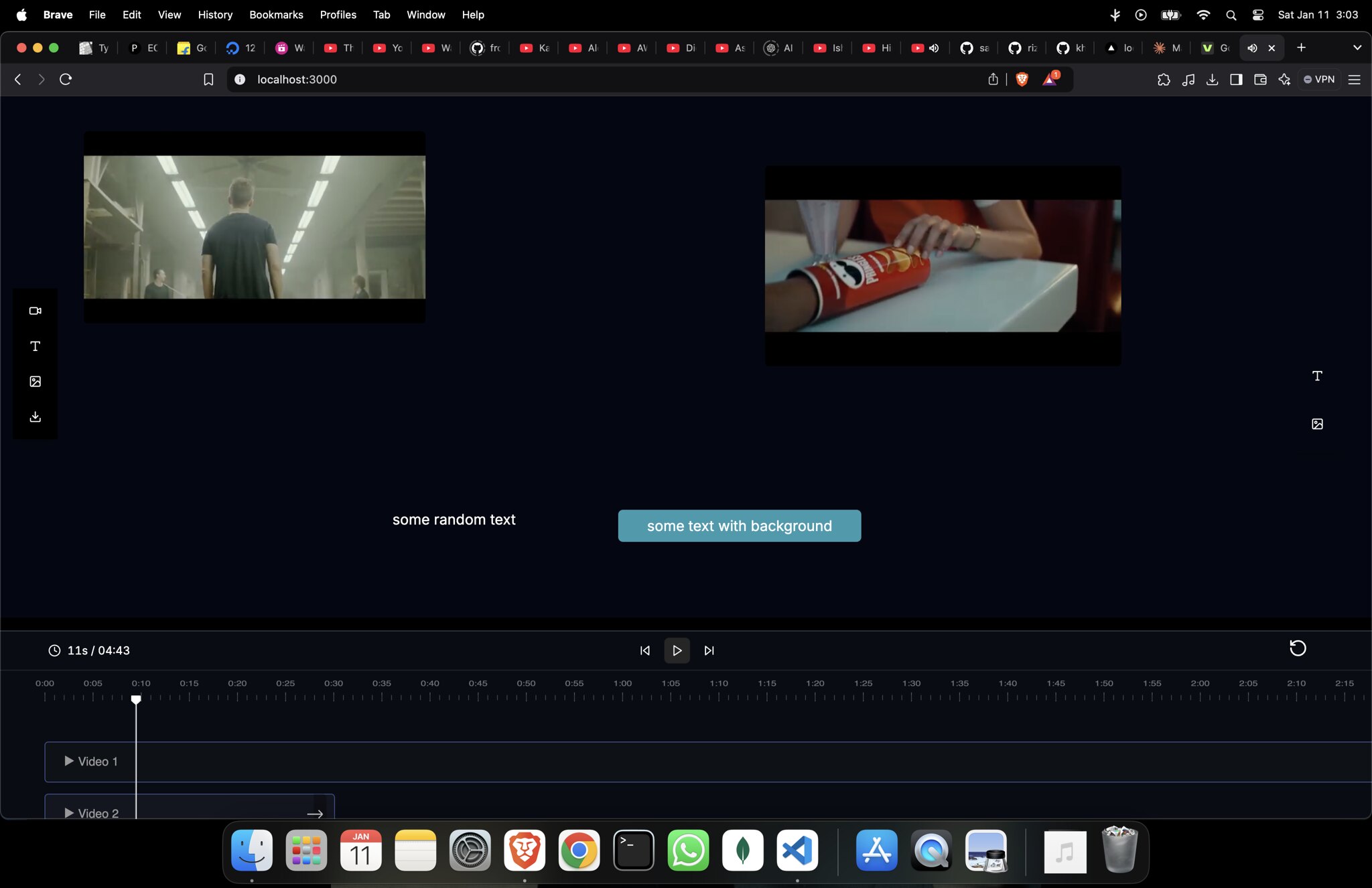 A sleek, browser-based video editor made in next JS and shad CN. Stack videos, images, and text with precise timing control and real-time preview and export with FFMPEG.