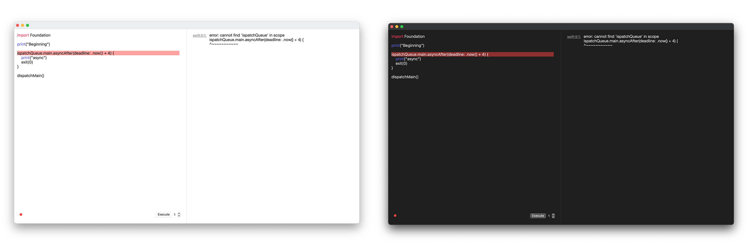 SwiftUI MacOS app allows the users to enter a swift script code to execute and see its output side-by-side.