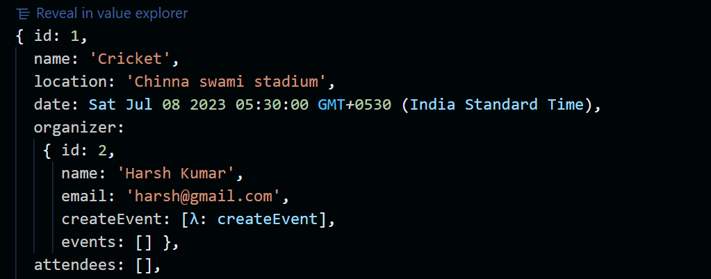 const organizer = new Organizer(1, 'John Doe', 'johndoe@example.com');