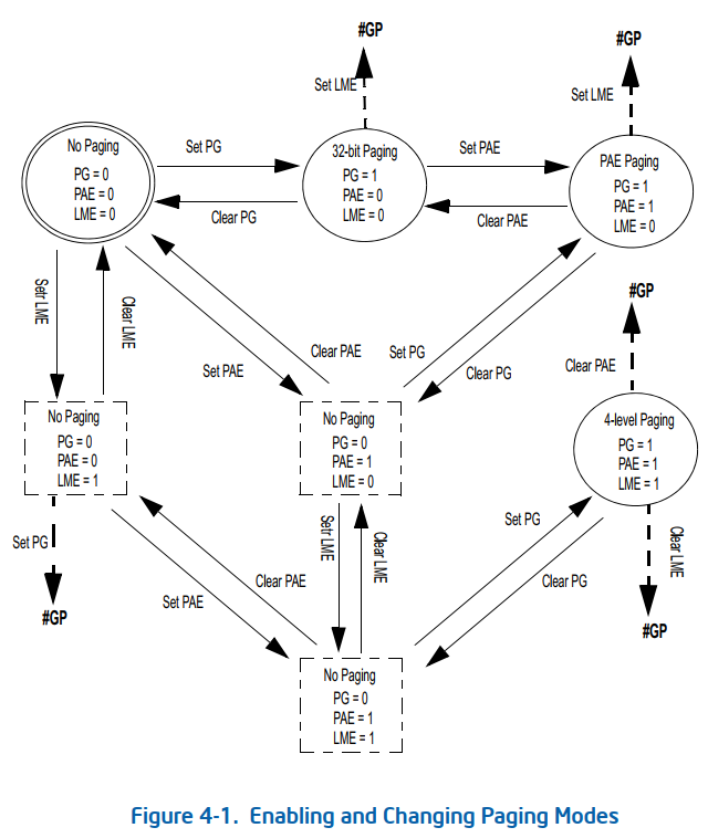 - when paging is disabled, each linear address has a one-to-one correspondence with a physical address.