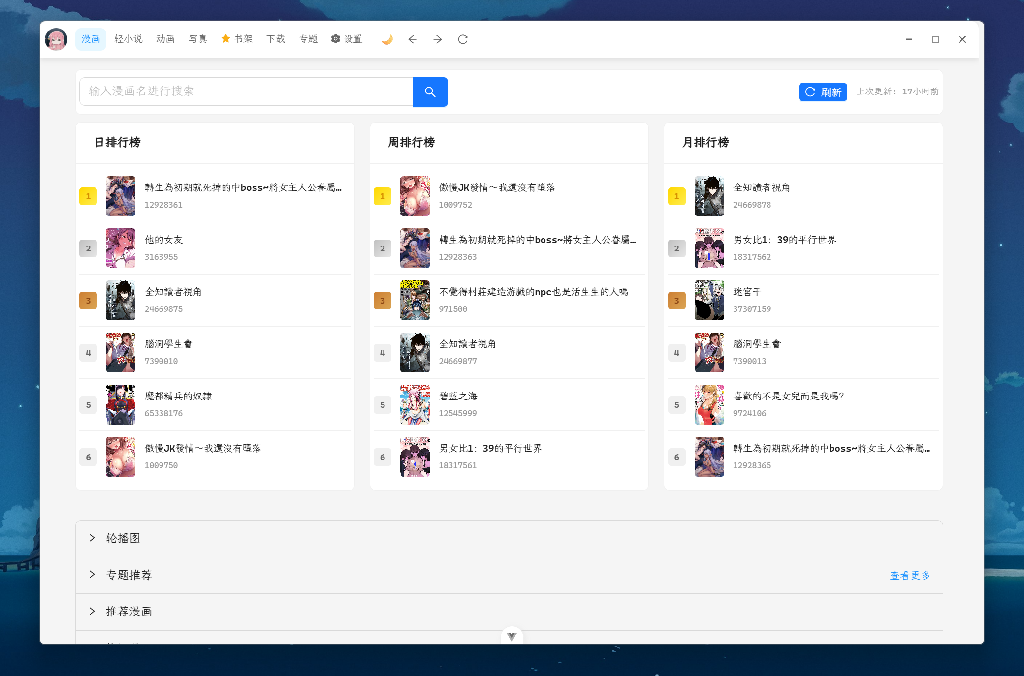 doki是一个集漫画、轻小说、动画于一体的桌面应用,提供简洁快速的漫画阅读体验。