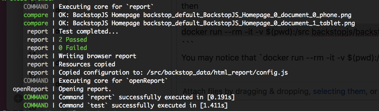 Want to make sure your changes work with the --docker option? You can rebuild your local docker image from your current BackstopJS source. From your BackstopJS root...