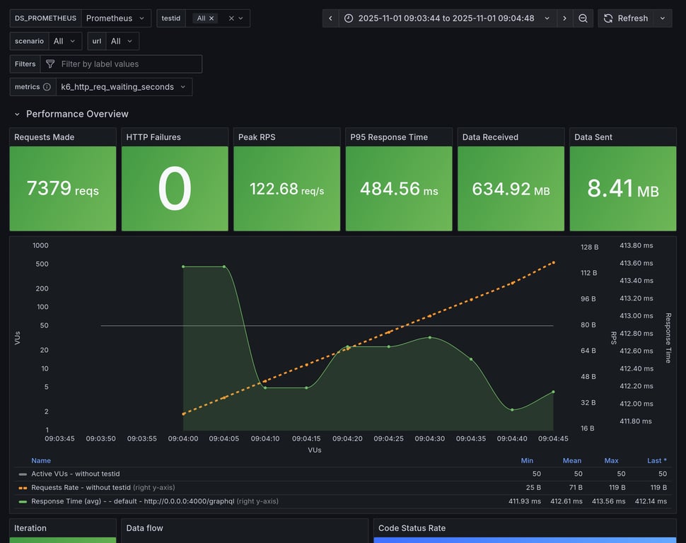 | apollo-gateway | 160 | 11058 total, 0 failed | avg: 1190ms, p95: 2635ms | ✅ |