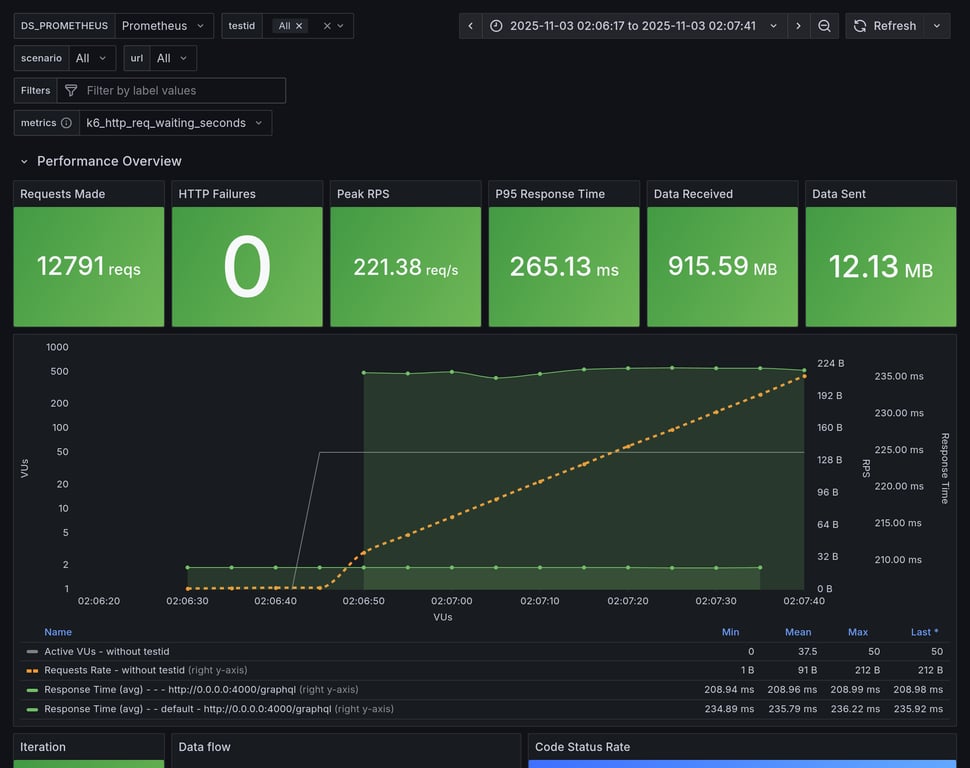 | apollo-gateway | 161 | 11039 total, 0 failed | avg: 1193ms, p95: 2586ms | ✅ |