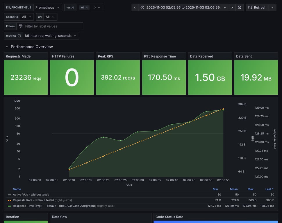 | grafbase | 1535 | 97289 total, 0 failed | avg: 143ms, p95: 327ms | ✅ |