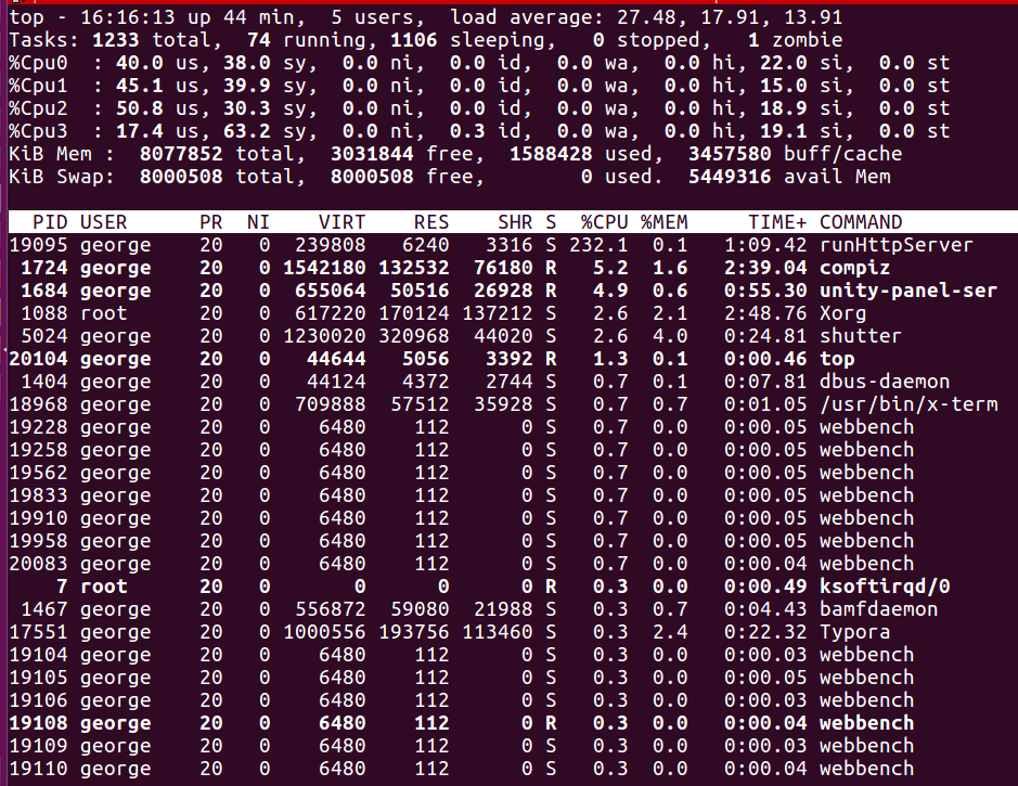- My Webserver 响应消息体为短字符串时测试结果和CPU负载