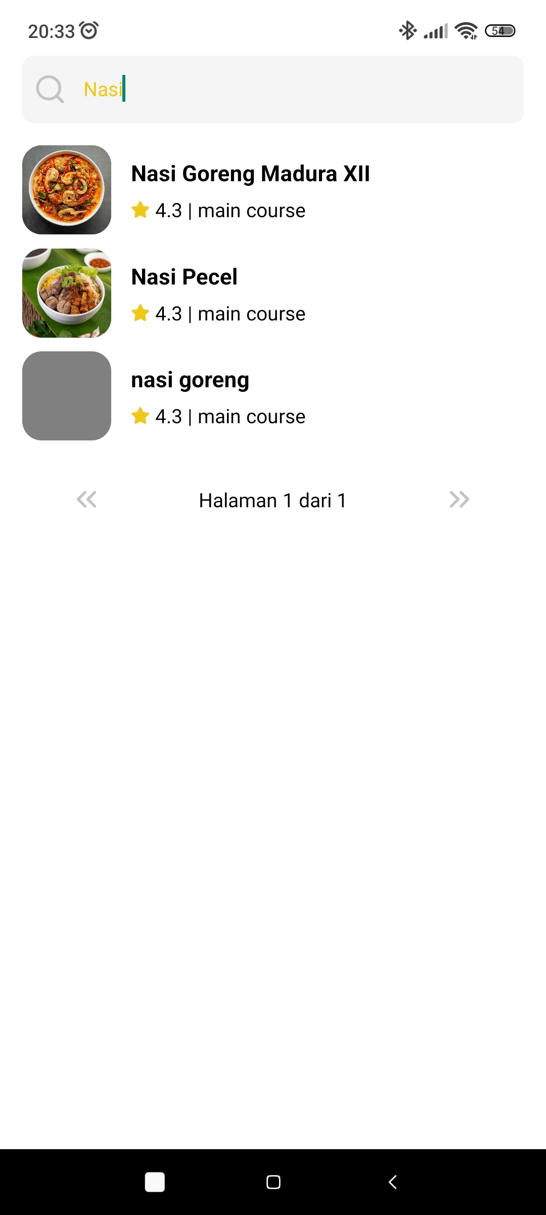 | Home Screen | Search Recipe Screen | Detail Recipe Screen |
