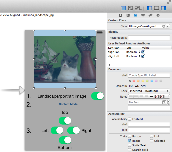 The image property of UIImageViewAligned is overwritten to forward the calls to the inner UIImageView, so you can just drag-n-drop into your app.