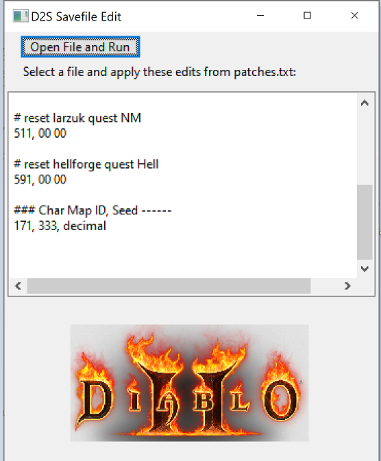 - Download d2s_edit.exe and patches.txt (right click "Raw" and "Save Link As") to the same folder