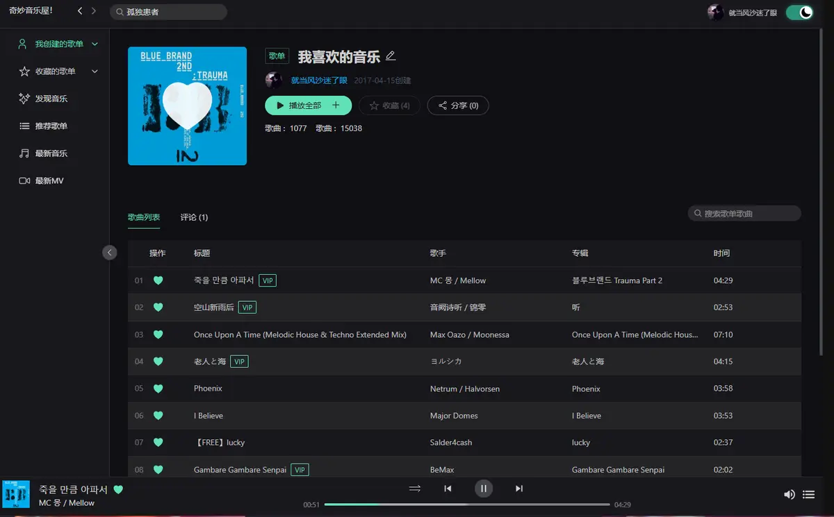 添加喜欢的音乐,获取我创建的歌单和收藏的歌单.