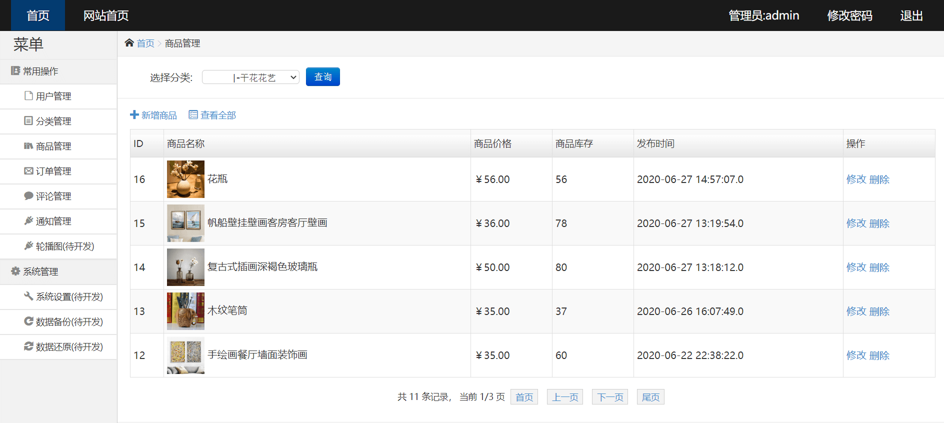 大二下的JavaWeb小学期课程写的一个家居电子商城管理系统,没有spring框架,纯servlet,线上家居电子商城系统,主要实现了用户注册,登录、浏览,查看家居商品信息,购物车,订单,支付,查看通知以及管理员对用户信息的管理,订单管理,商品管理,通知管理,分类等的管理。