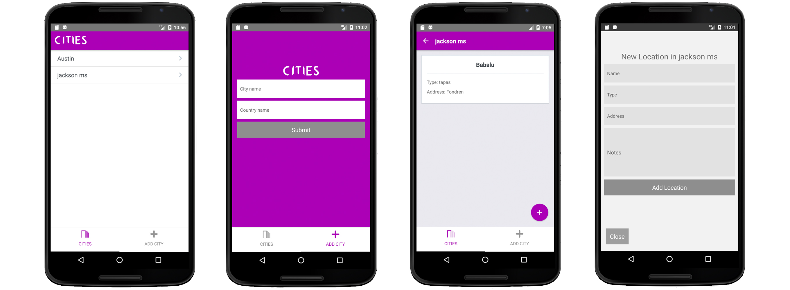 React Native Training - Cities Demo App iOS Android To get started Clone the repo git clone https://github.com/react-native-training/cities.git Install dependencies using yarn or npm yarn or npm i Run on your device