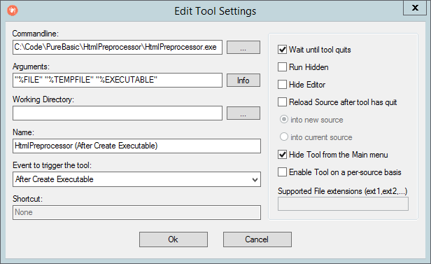 To generate WebApps, the HtmlPreprocessor must be set up as a separate tool with the "After Create Executable" trigger.