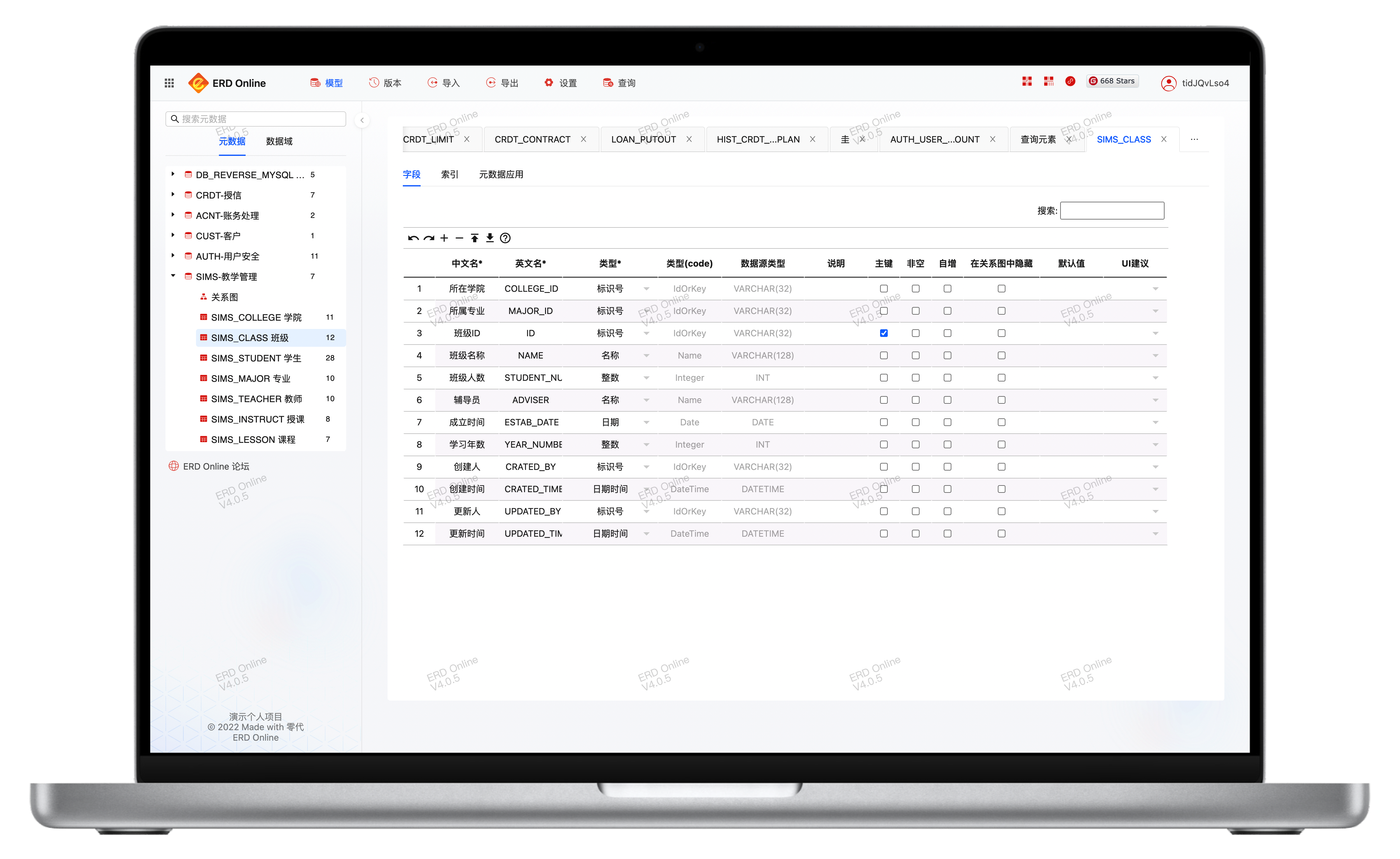 元数据 ERD Online 体验:https://app.erdonline.com/